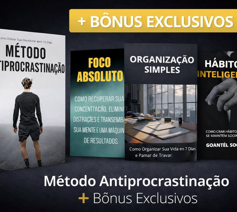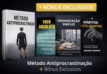 O Método Antiprocrastinação é um sistema prático de 15 dias criado para ajudar você a sair do ciclo da procrastinação e criar disciplina real, mesmo sem motivação.